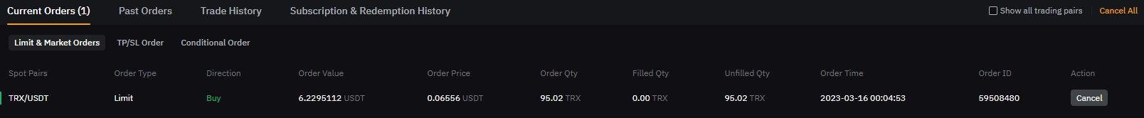 저는 트론 코인(TRON – TRX)를 USDT로 구매해보겠습니다.