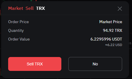 확인 창이 나오고 Sell TRX를 누르면, 즉시 체결됩니다.