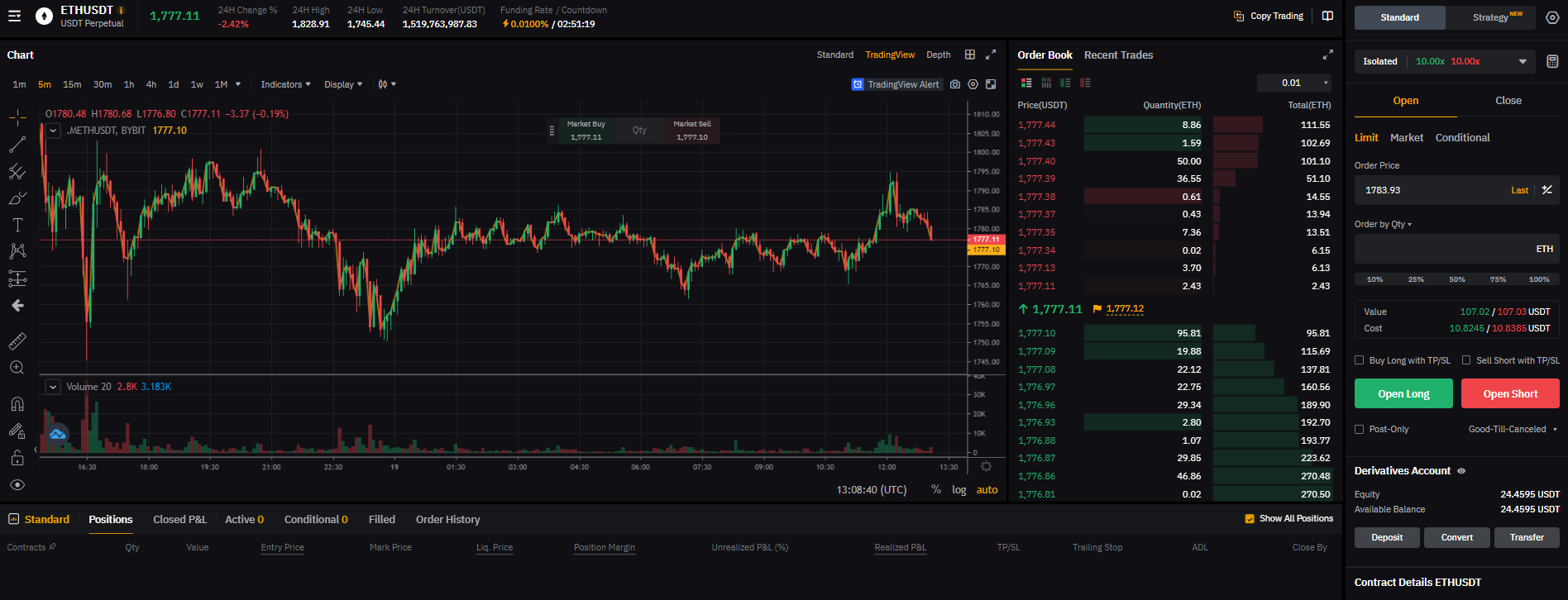 바이비트 USDT 선물 화면 설명