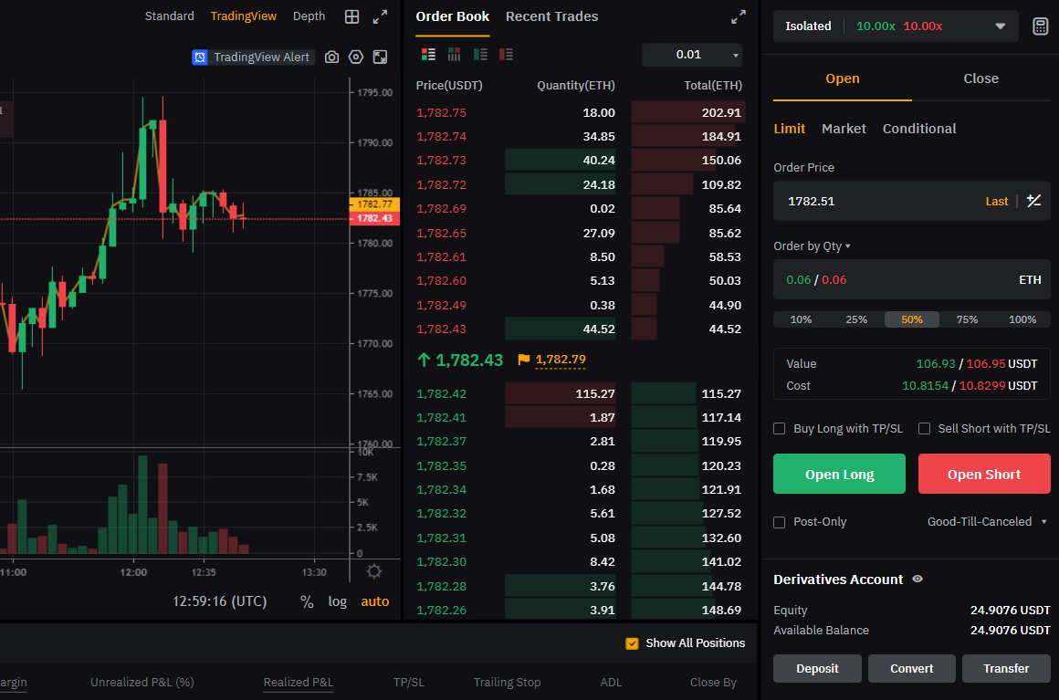 Derivatives > USDT Perpetual > BTC/USDT, ETH/USDT 등을 선택