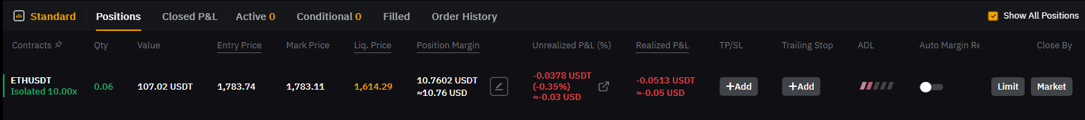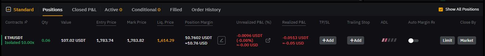 - Realized P&L: 수수료 제외한 실현 예상 수익