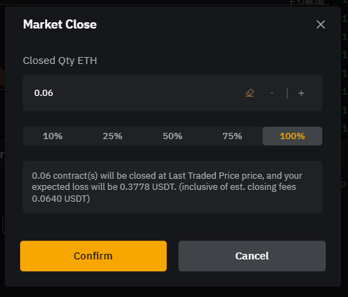 Confirm을 누르면 해당 포지션이 마감됩니다.