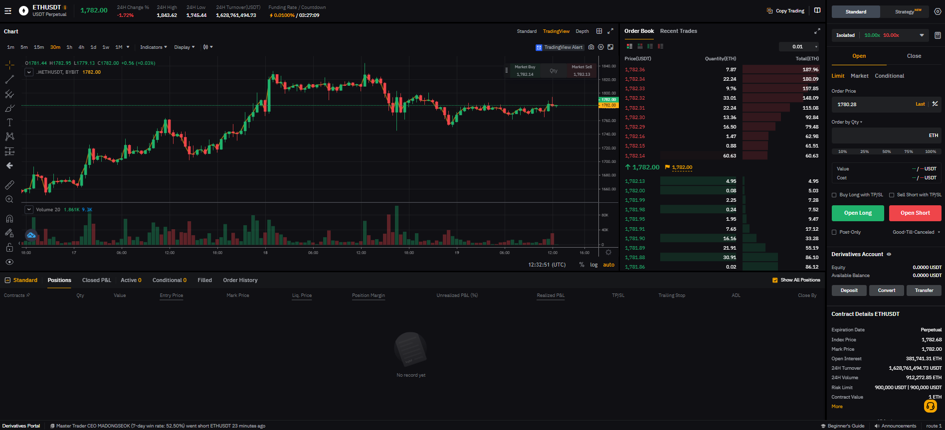 바이비트의 선물 거래 화면입니다.