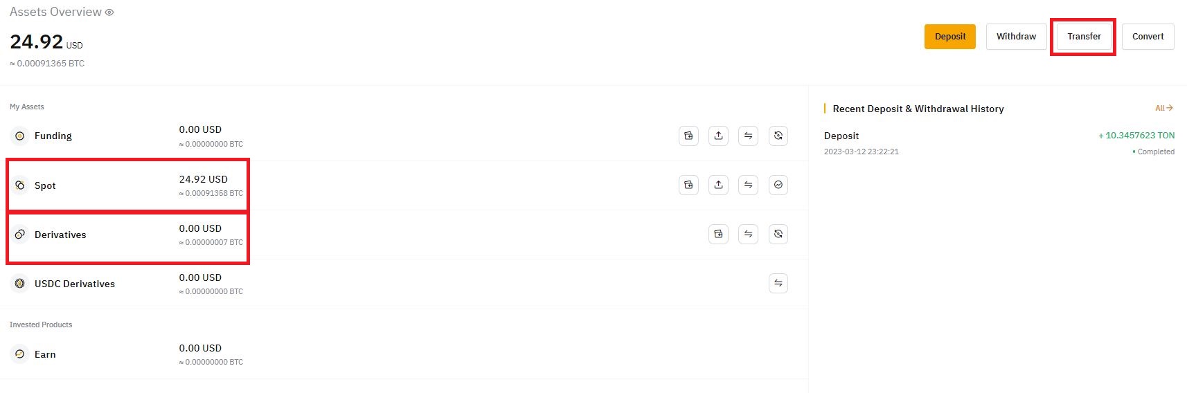 Spot 이라는 곳에 USDT가 있으면 거래할 수 없기 때문에,