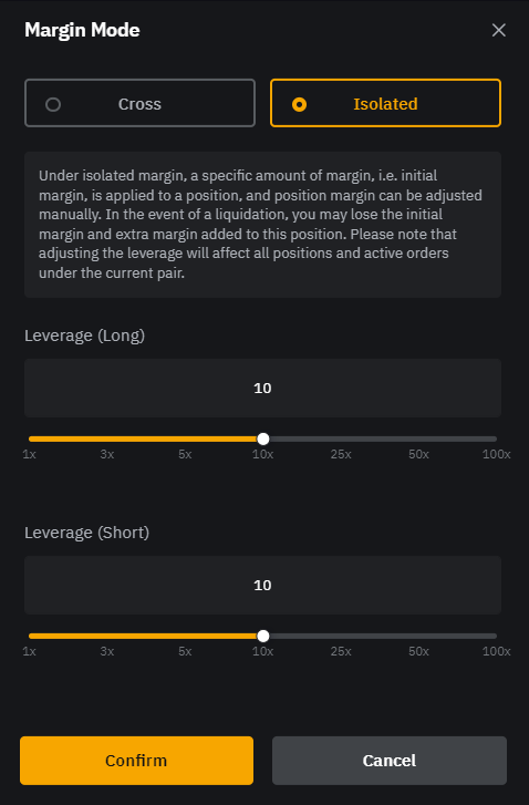 청산 가격이 되면 해당 금액만큼만 청산됨. - Leverage(Long): 공매수를 할 때의 보증금 대비 거래 금액 배율