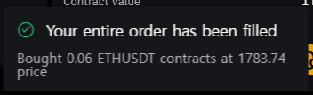 우측 하단에 이렇게 주문이 실현됐음을 알려주며
