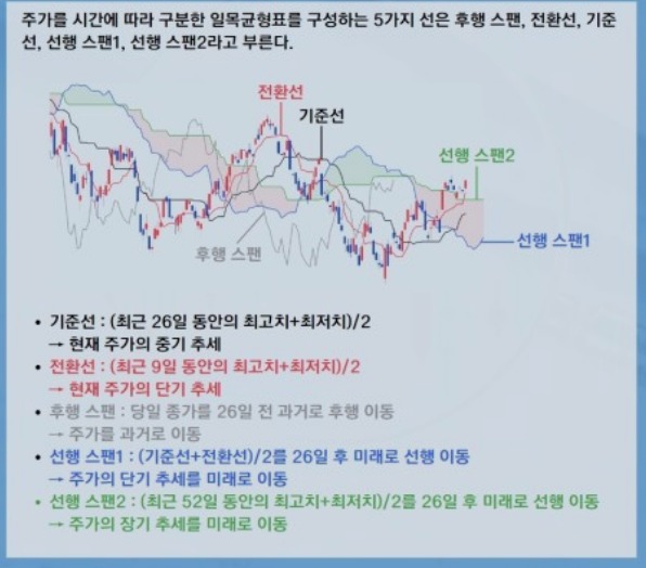 여기에서 미리 밝혀두는 부분은 일목균형표는 분명히 도움이 되지만, 해석하기가 상당히 난해하기 때문에 일반적인 투자자는 각 선의 모든 내용까지 상세하게 파악하기에는 어렵다.