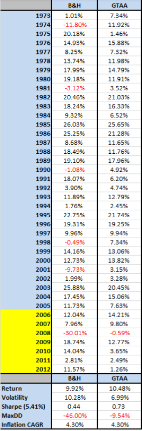 2006년에 출판한 전술적 자산배분의 계량적 접근을 2008~2012년 기간의 자료로 업데이트하여 전략이 제대로 작동했는지 확인해 봄. 전반적으로 잘 작동하지만 주식과 채권은 최대 손실폭을 갱신함. 이에 따라 자산군을 새로 추가하고 변화를 주어 재차 시험함.