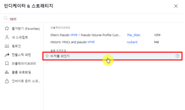매물대 지표는 VPVR (Volume Profile Visible Range)을 검색하시면 됩니다.