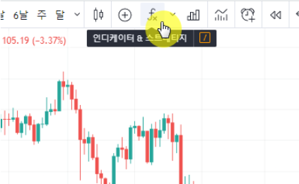 차트 상단에 ‘Fx’ (인디케이터 & 스트레티지)라고 표시되어 있는 버튼을 클릭해 줍니다.