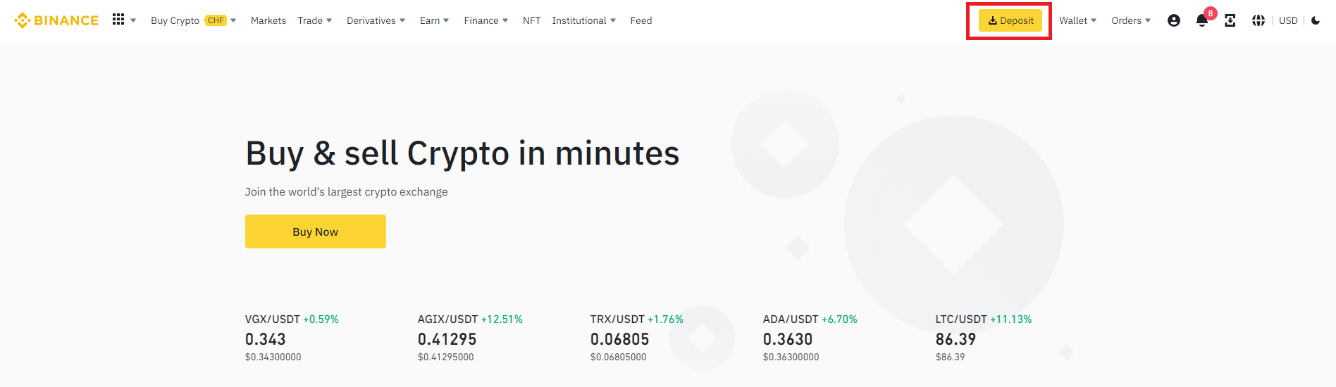 바이낸스에 로그인합니다.