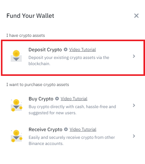 Deposit Crypto 선택